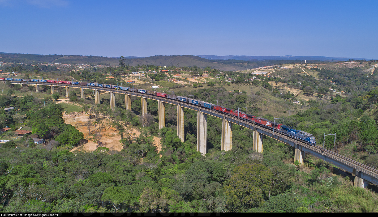 | Sunny morning at region of Eng. Acrisio. The classic hot-spot, from another angle, since most of the pictures were from the ground. The train is Rumo X91 led by AC44i #8317, running from Mairink to Itu. |