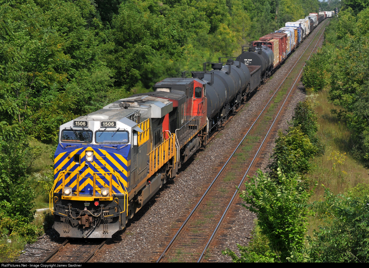 | CREX 1506, and CN 2691, lead 119 cars through the plant at Hardy on train M39671 21 |