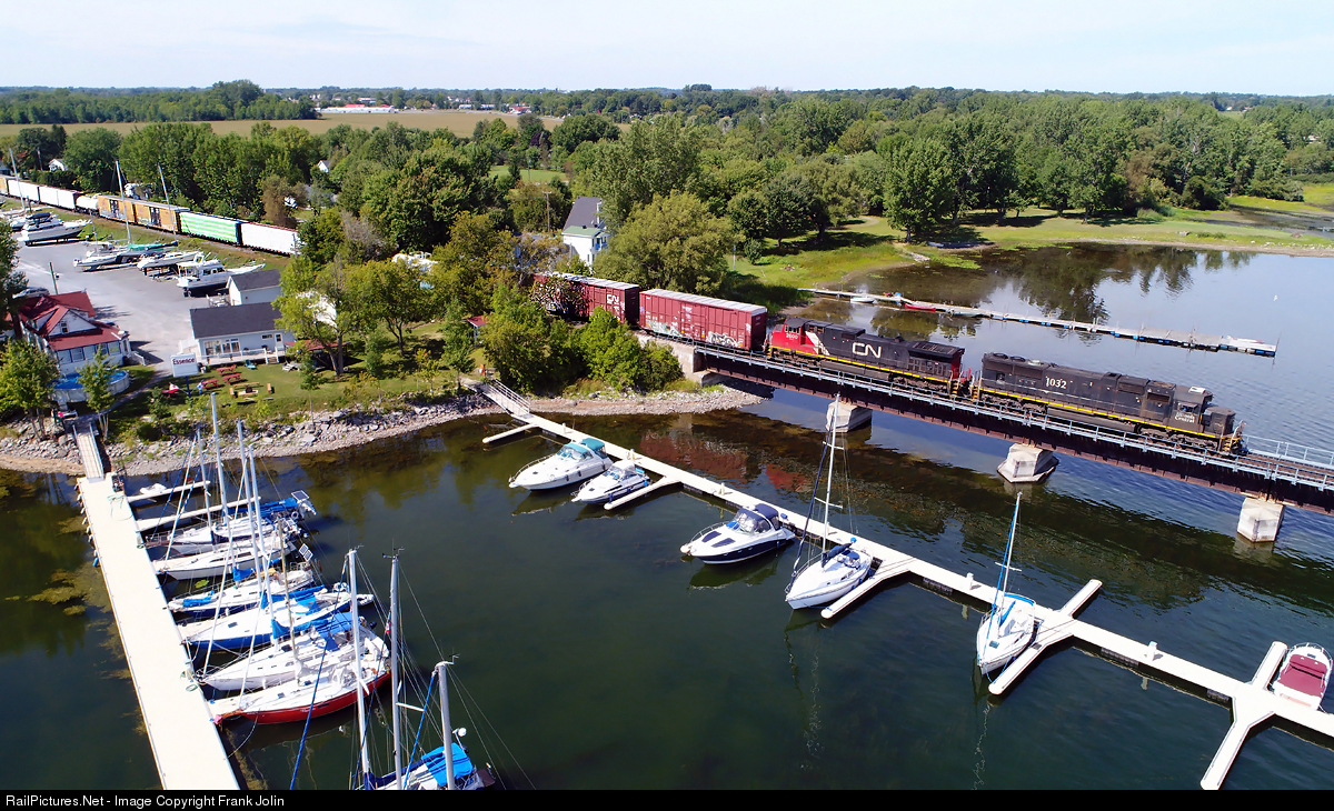 On a beautiful September afternoon, Canadian National manifest 324 is crossing the Richelieu River as it is heading south toward St Albans Vt.