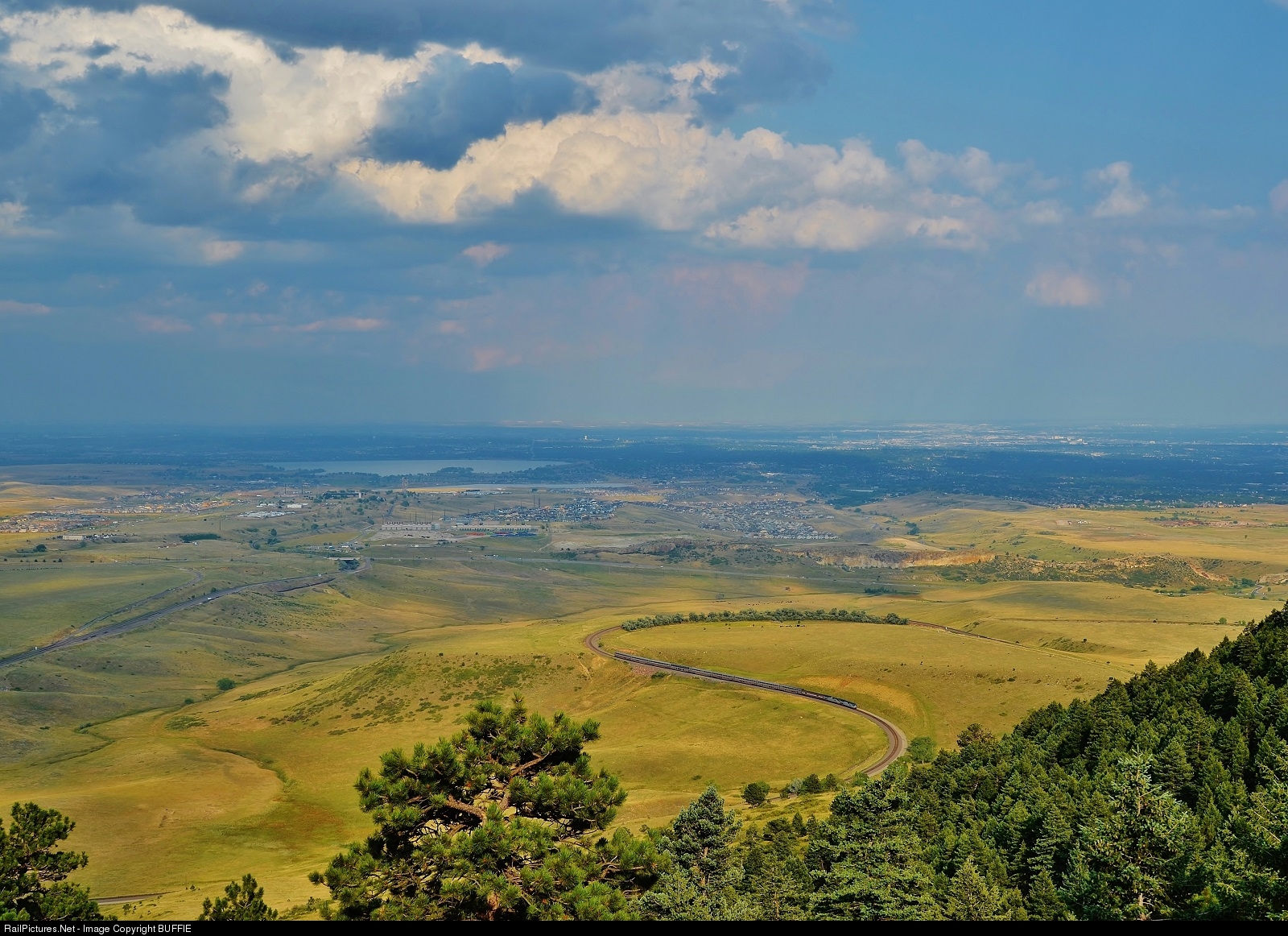 | Under threatening skies, AMTK 837 leads the California Zephyr through Big Ten Curve. After traveling through Rocky and Arvada it will soon pull into Denver's Union Station before eventually heading to Chicago. |