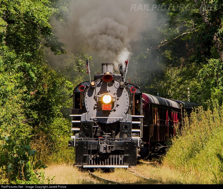 1702 rounds a curve nearing Wilmot with the west bound Tuckasegee River excursion on its return trip to Bryson City on a warm afternoon.