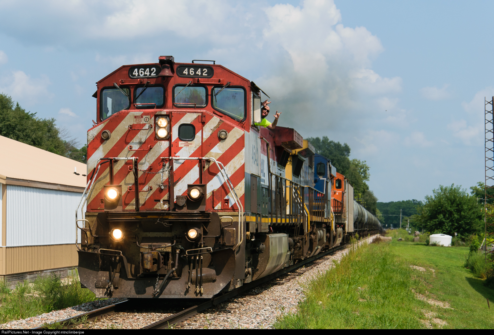 A CN empty ethanol train approaches Waterloo, Iowa with a rainbow lashup led by one of the few C44-9WL's remaining in BCOL paint. The conductor seemed to enjoy the attention as we gave chase to the train.