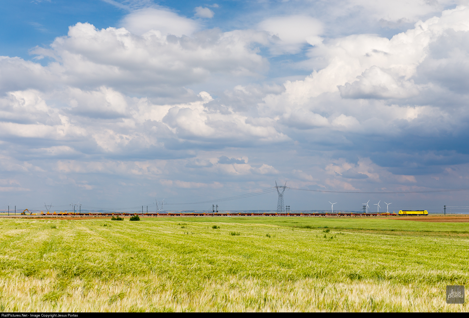 ferrovial 335.032 with a rail train.