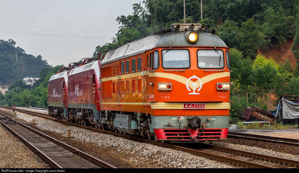 | Because ordinary passenger trains on Hainan Island need to run on electrified railways, Guangzhou Locomotive Depot needs to send electric locomotives to Hainan Island. Because the Guangzhou-Maoming Railway is not electrified, diesel locomotives are needed for traction. |