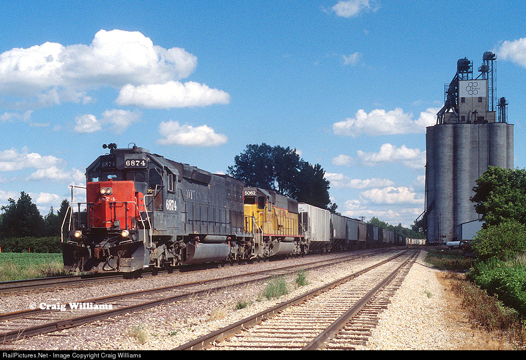 The 6874 was rebuilt by SP to SD45T-2Rs at Sacramento in April 1989 from SP 9322. this unit This unit would be retired by the UP on April 27, 2001, and would never see the renumbered # of UP 4968. |