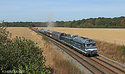 After a 3-day exhibition in Paris East station, the convoy with historical material, for Heritage Days, is returned to the museum of Mulhouse, via line 4. With the BB 67556 in the lead, the convoy passes the side of Courquetaine.