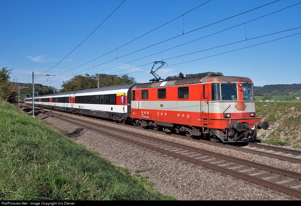 | The SBB Re 4/4 II 11109, still in the Swiss Express paint scheme, on the way to Zürich HB with train IC 189. |