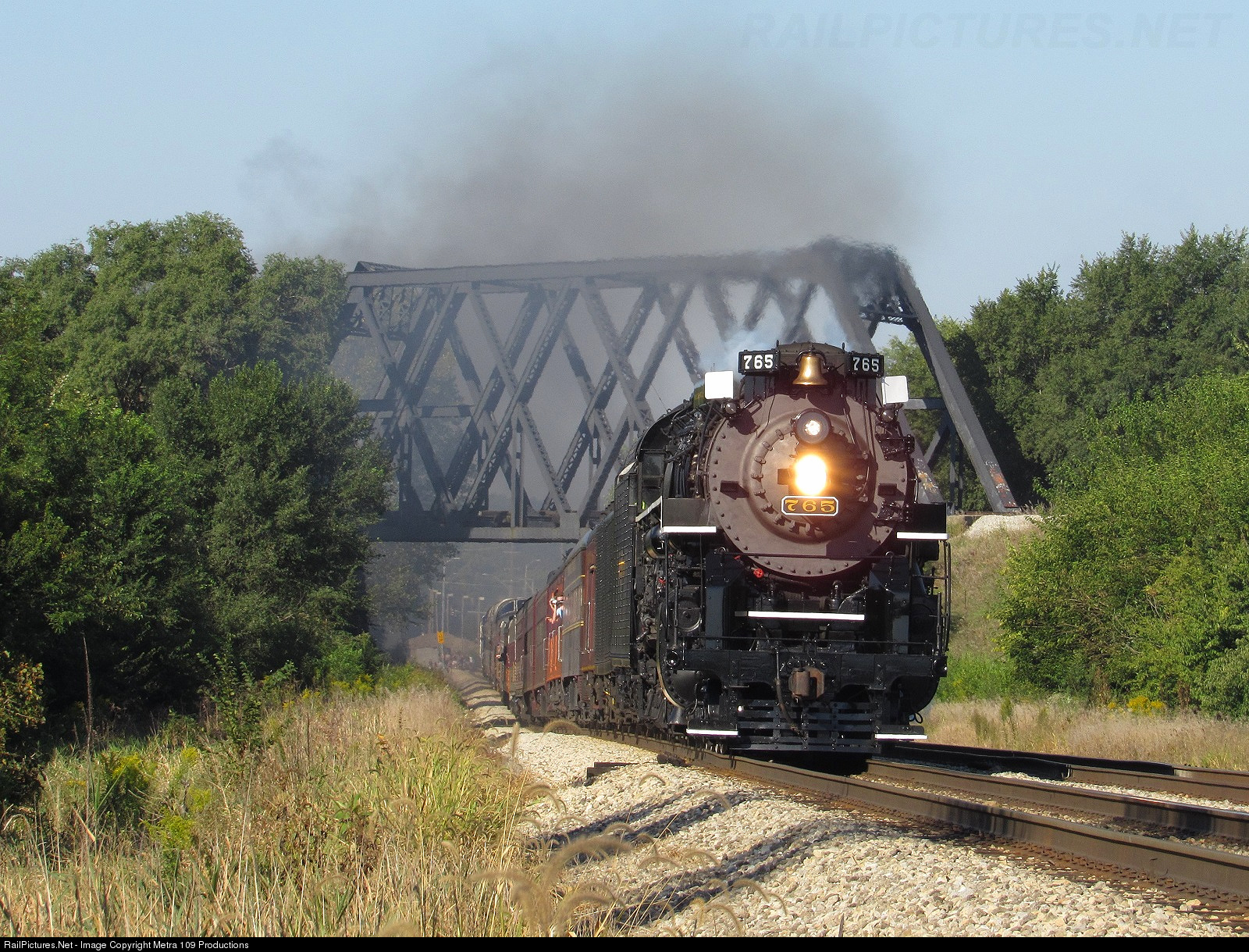 NKP 765 leads the first "Joliet Rocket" of the weekend under the historic New Lenox Wabash bridge.