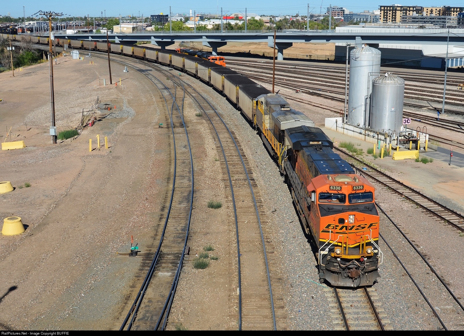 BNSF 6336 (ES44AC) leads a loaded coal train out of the Denver Yard.