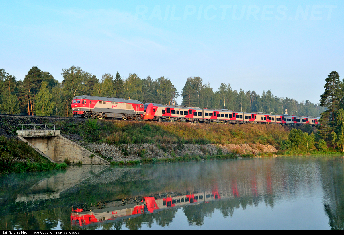 Locomotive TEP70BS-320 with electric train ES2GP-002, train № 738 "Swallow"(Lastochka) Ivanovo - Moscow