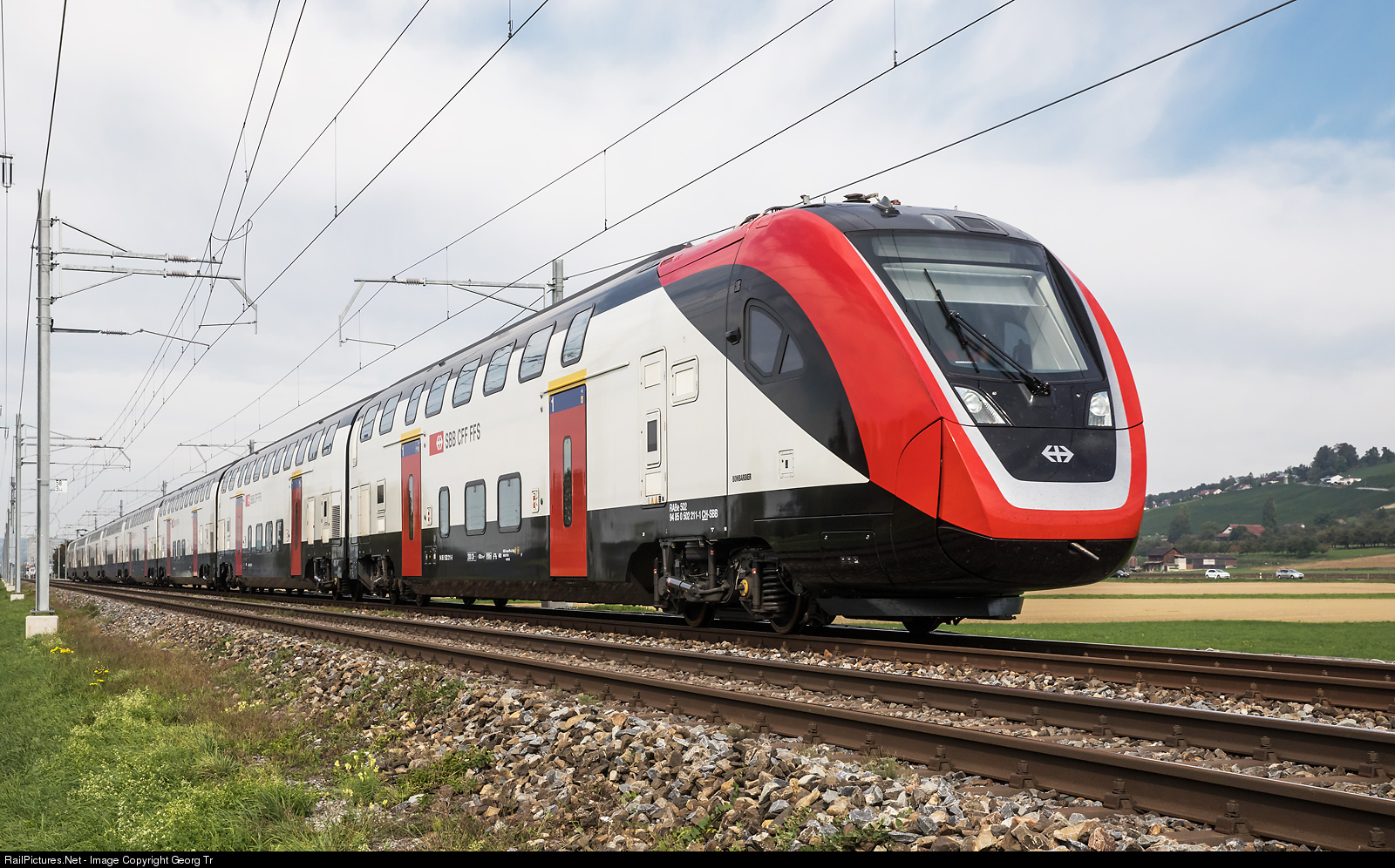 Test run of new Bombardier doubledeck train for the SBB, RABe 502 # 211 between Märstetten and Weinfelden.