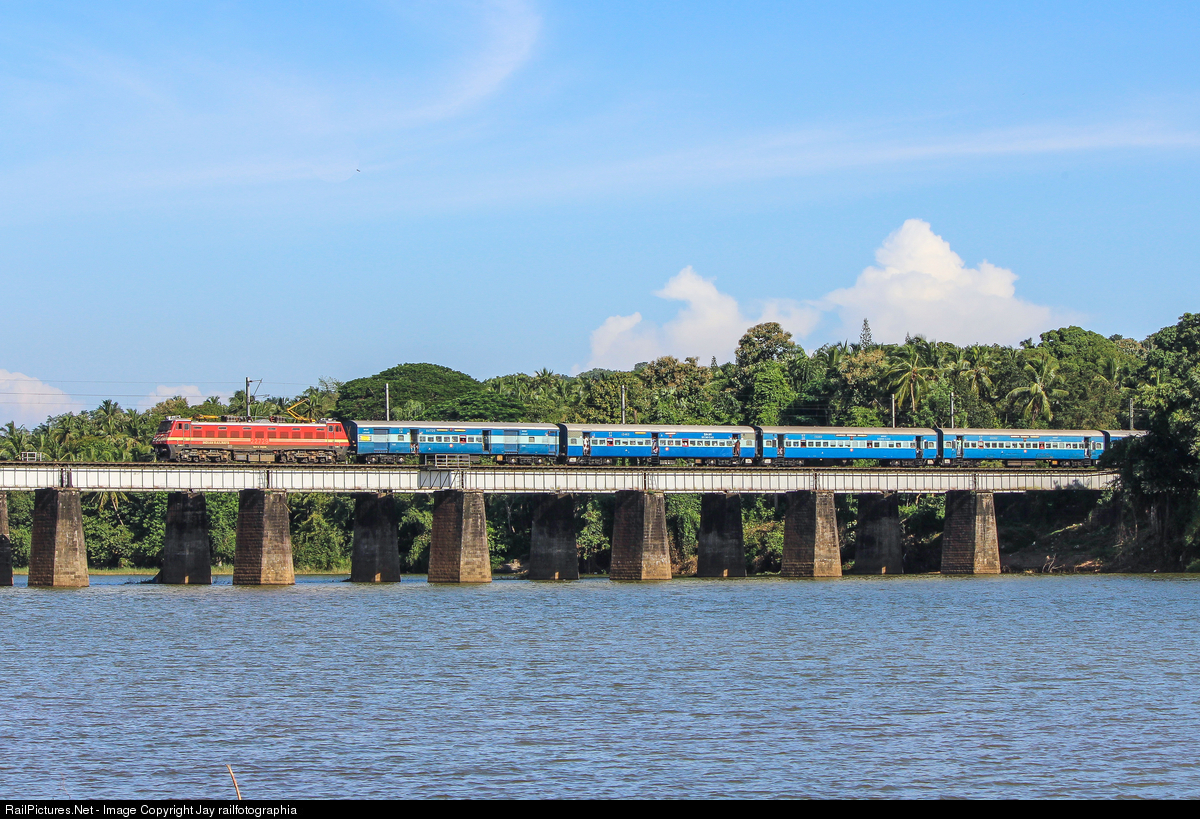 ERODE WAP-4 powering Mumbai CSMT Express on its way to Palakkad Jn, crossing River Nila on cool sunny evening