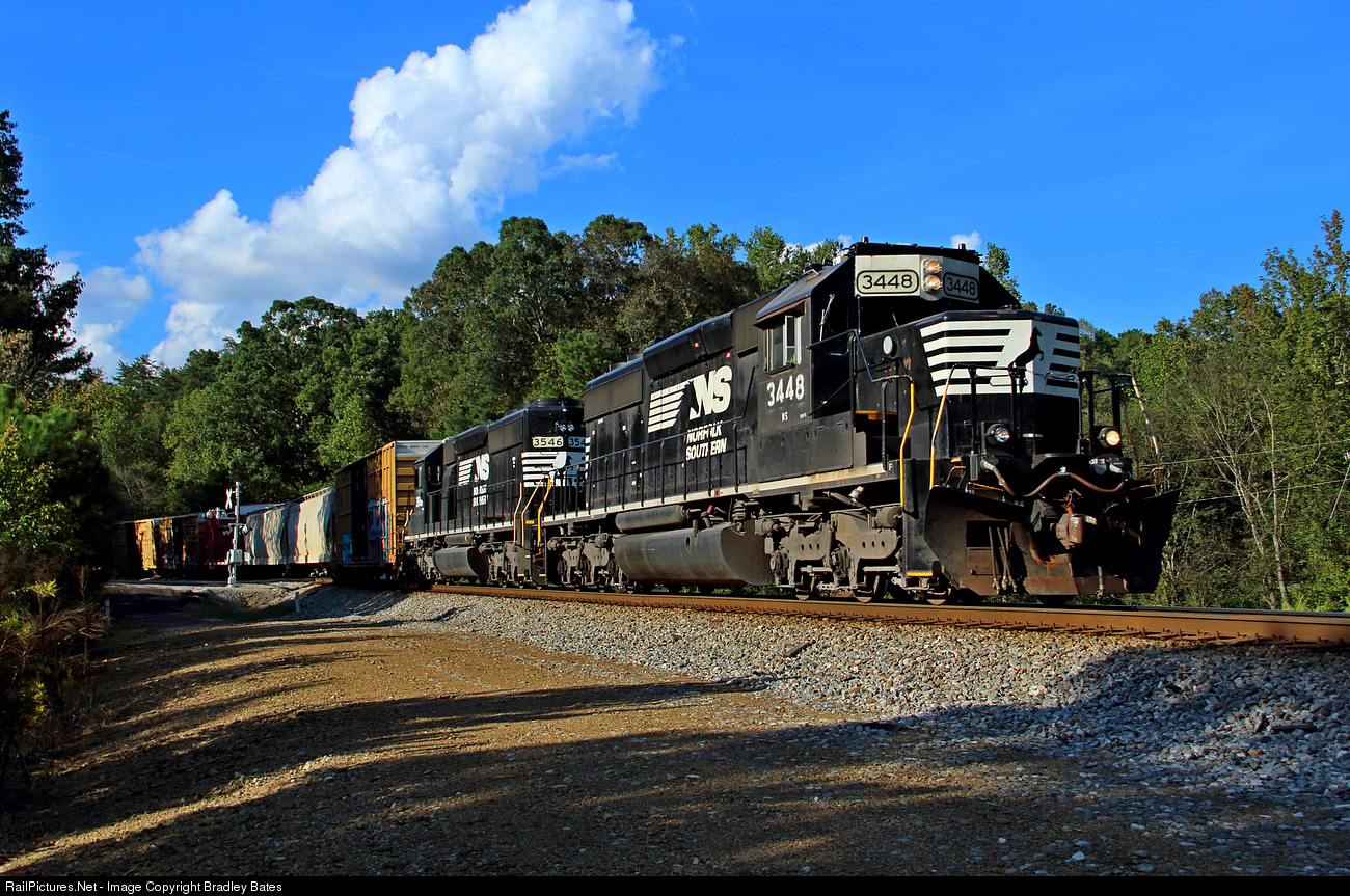 | Norfolk Southern Local A64 heads East to Anniston, AL. As they pass through Eden, AL. With NS SD40-2 Snoot Nose #3448 leading the way |