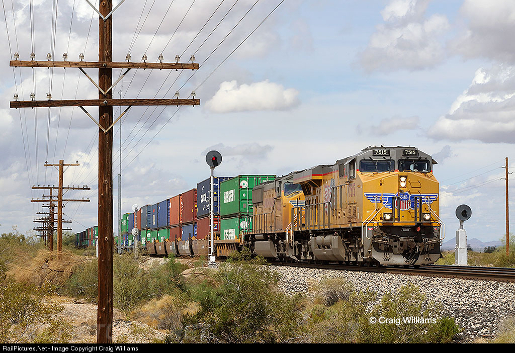 We didn't really figure with Tuesday's forecast we would get anything for decent shots. Surprisingly when we landed it was sunny out and we made tracks to the UP Gila Sub around Shawmut. Here is our 2nd eastbound from Los Angeles, CA, (Savage Pacific Services) to Wilmer, TX, (Dallas Intermodal Terminal) passes the west switch of Bosque, the 1st siding east of Gila Bend. Fighting the 1% grade, this guy slowly creeps east towards Tuscon, the next crew change. This is the UP Gila Sub, ex Southern Pacific Sunset Route between Yuma, AZ and Tuscon, AZ.