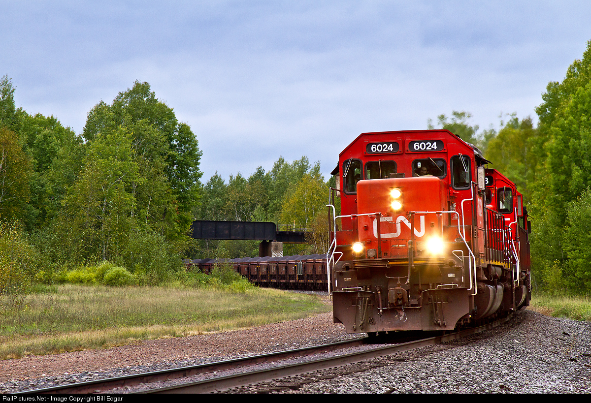 While heading to Munger from Proctor, MN to catch a shot of a westbound CN manifest, I detoured onto Jeffrey Rd. to look for a shot. This is a blind crossing requiring care in checking for rail traffic before crossing the track. I went across, turned around and started back across the track when I noticed this eastbound ore train rolling under the former DWP bridge at Munger. I lurched off the crossing, left the car in idle, grabbed the camera and hoped for a grab shot. Luckily he was going slow enough that I could catch him, although there would be no time for metering. Thankfully it was mostly cloudy and the camera was pretty close already...