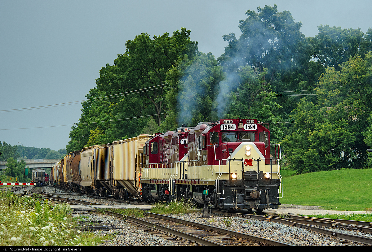 RailPictures.Net Photo: OSRX 1594 Ontario Southland Railway EMD GP9u at Woodstock, Ontario, Canada by Tim Stevens