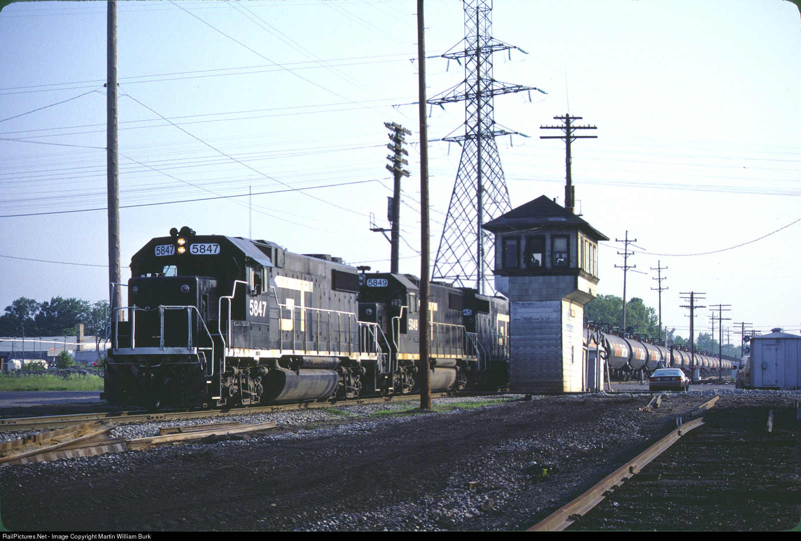 What are the chances of 3 black GTW ex-PLE units on the Tank Train??? Looks so good! Train 420; May 31 1986. Martin Burk Photo Collection; unknown photographer- Larger image available on my flickr: https://flic.kr/p/s1DaJX