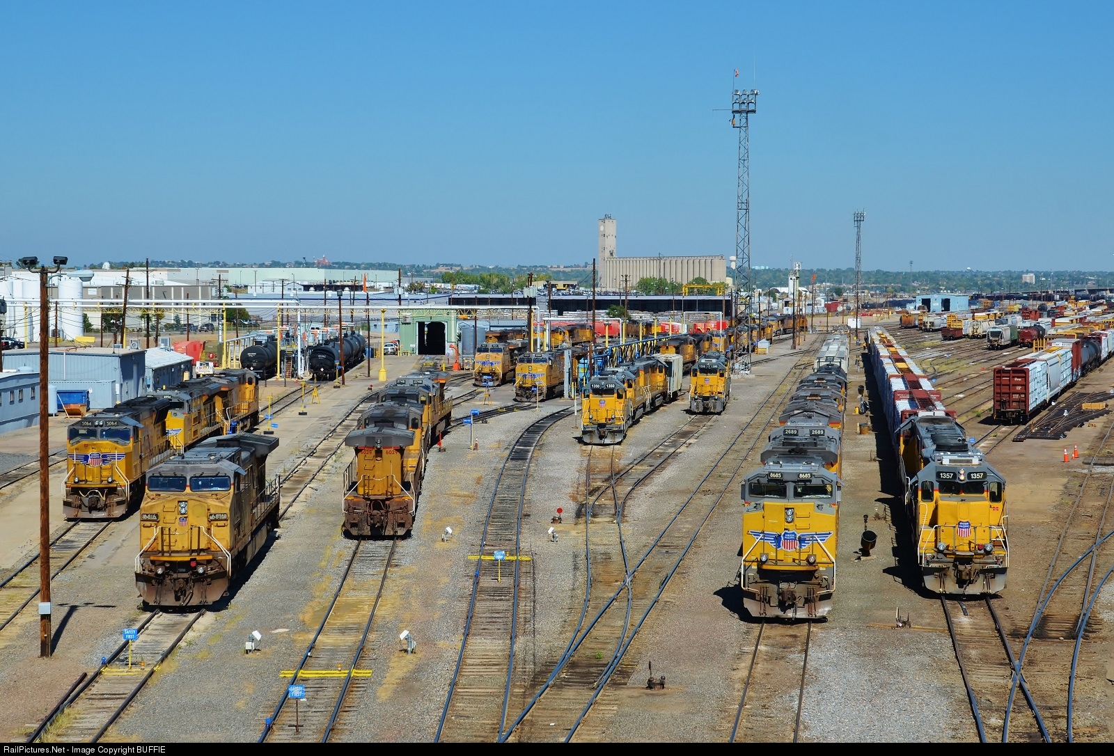 | There is a nice variety of engines on this day in the Union Pacific's North Yard in Denver, Colorado, including heavies such as UP 8685 (SD70ACe) and light power such as UP 1357 (a former Denver and Rio Grande Western GP40-2). |