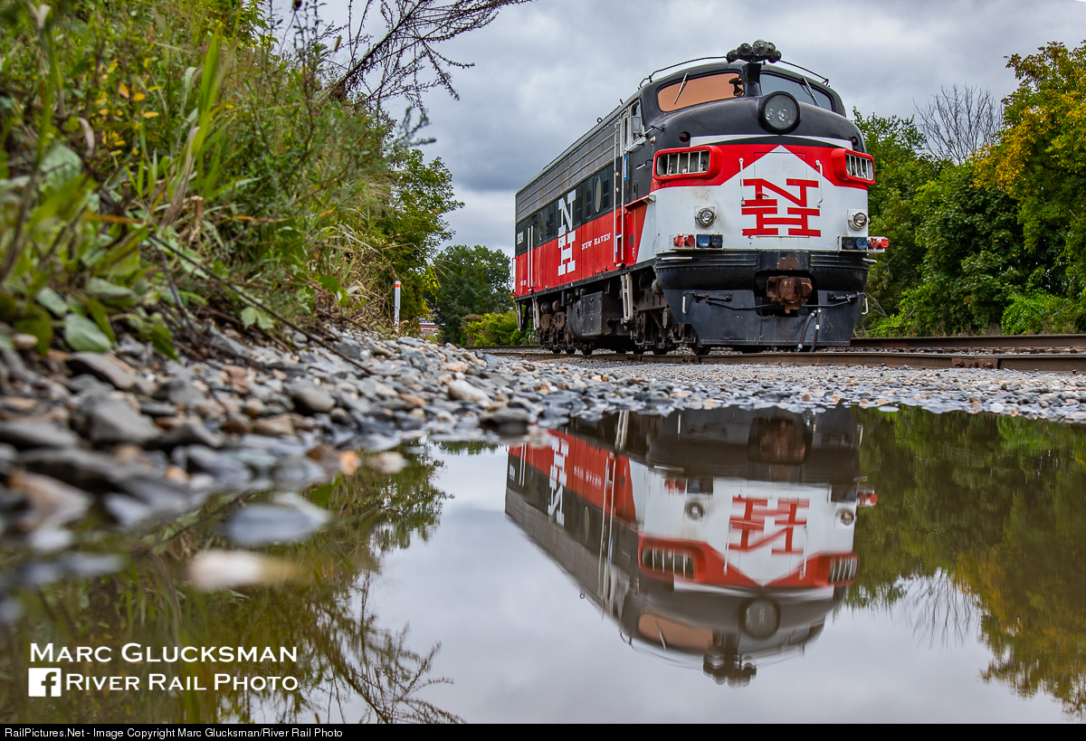 Dual mode, dual photo. Webb Rail (WEBX) FL-9 2024 (ex-CNDX 2024, nee-New Haven 2058, FL9, built 11/1960) awaits pickup by the Housatonic Railroad in Pittsfield, MA on October 3, 2018.