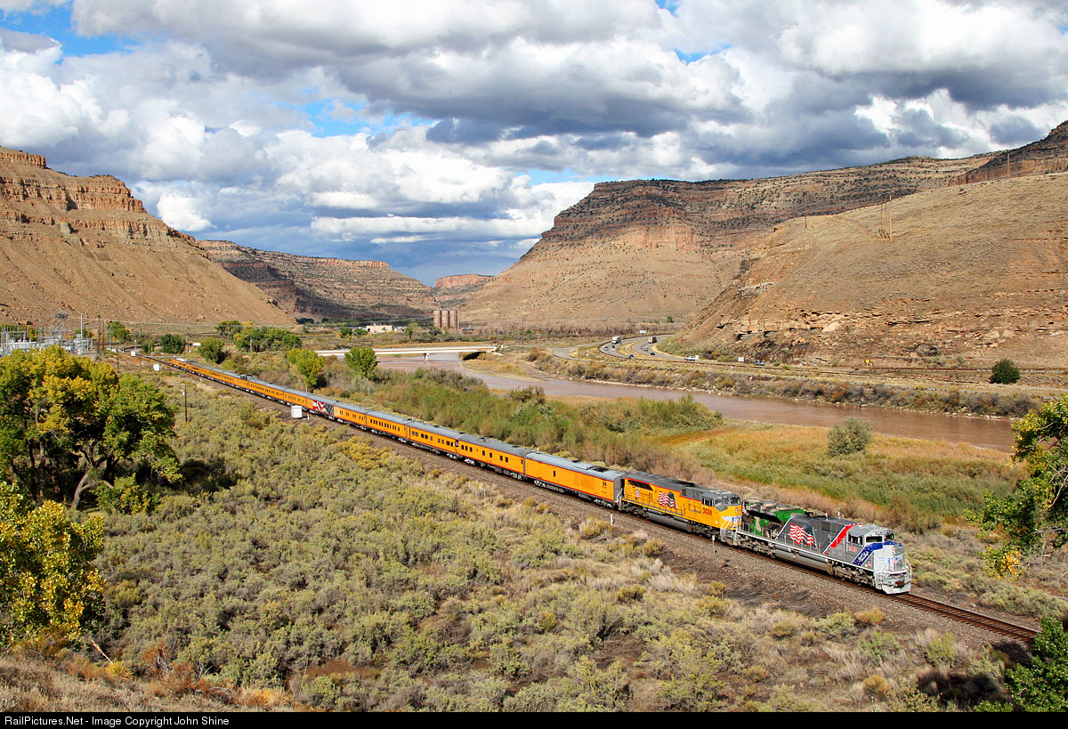 Union Pacific #1943 leads a 17 car Passenger special Westbound through Cameo, CO. The train would terminate at Grand Jct. for the night before heading East the next day.