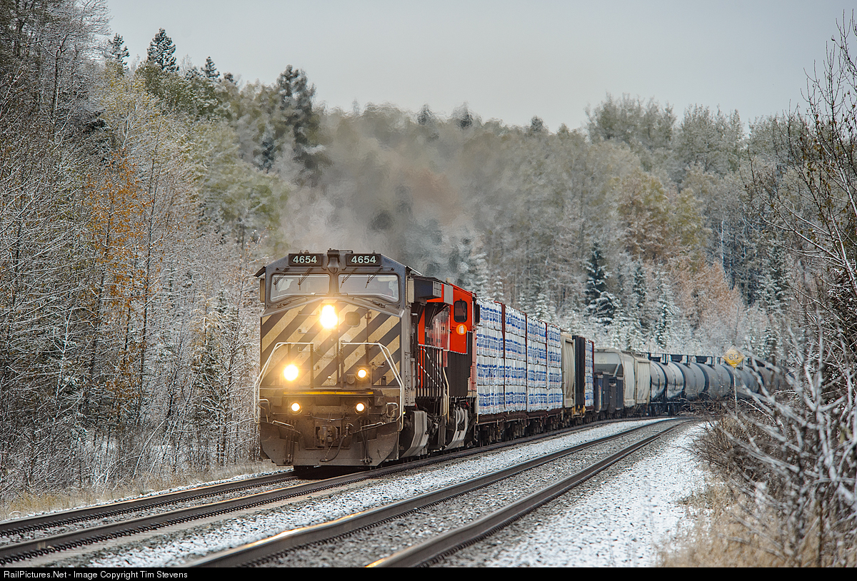 Winter has come way too early this year in this part of the world! Temperatures are already below freezing (-5C at time of the photo) as BCOL C44-9W 4654 storms east on the Edson Sub with M310's train.