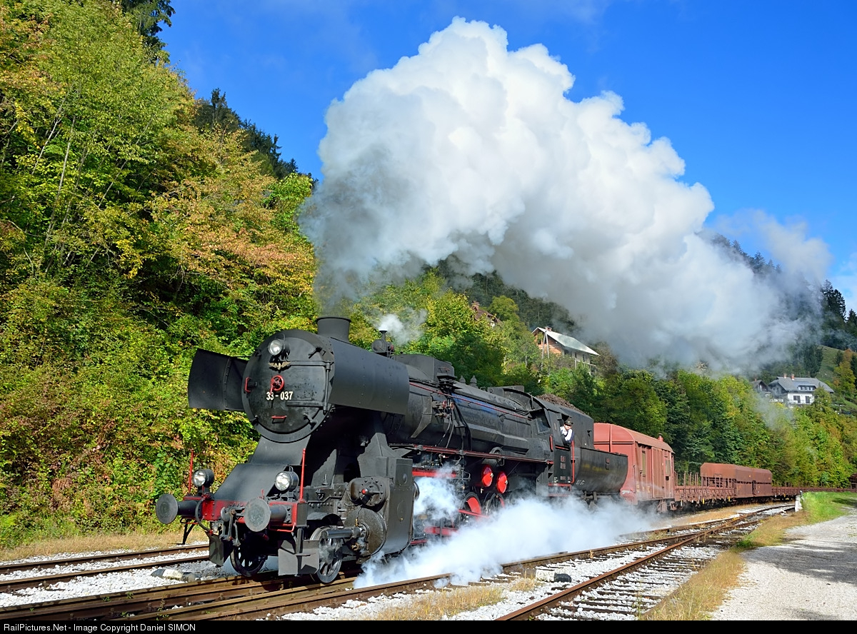 RailPictures.Net Photo: 33 037 Slovenian Railways Steam 2-10-0 at Between Jesenice and Nova Gorica, Slovenia by Daniel SIMON
