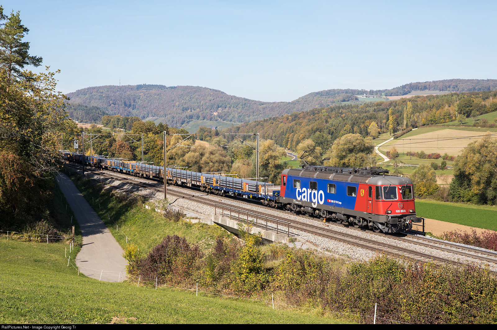 Re 620 # 083 (Re 6/6 # 11683) "Amsteg-Silenen" is pulling a heavy train with new rails on the north ramp of the Bözberg near Zeihen.