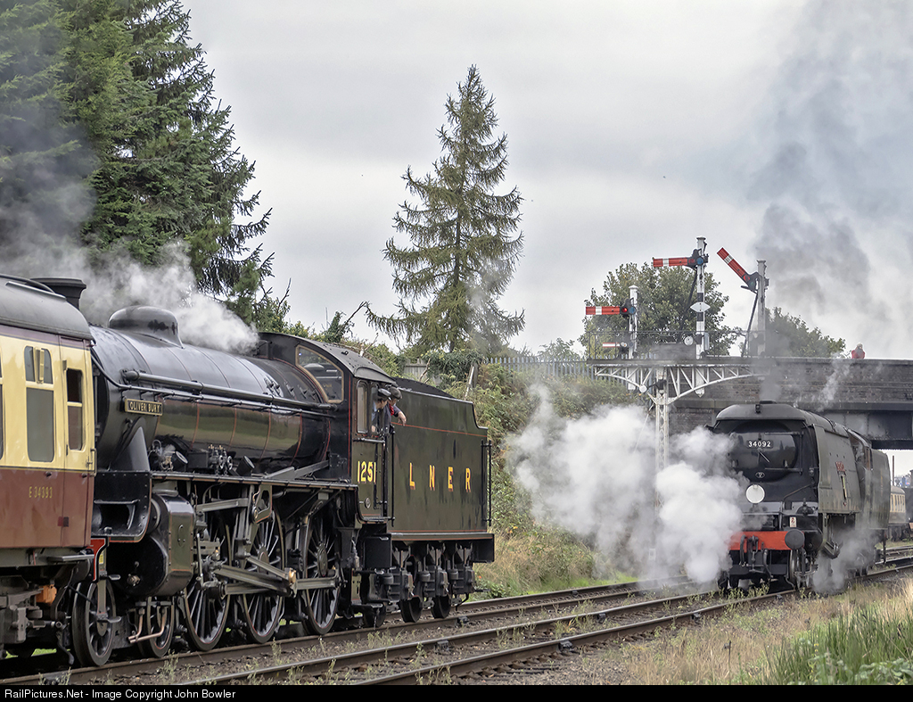 LNER 1264 (running as LNER 1251 'Oliver Bury') approaches Loughborough with the 1045 from Leicester North as SR 34092 'City of Wells' prepares to back down onto it's train - the 1130 Loughborough - Leicester North during the Great Central Railway's Autumn Steam Gala