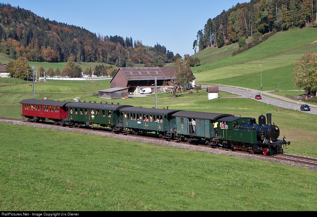 | DVZO steam locomotive Ed 3/4 2, built 1903, on the way from Bauma to Hinwil. |