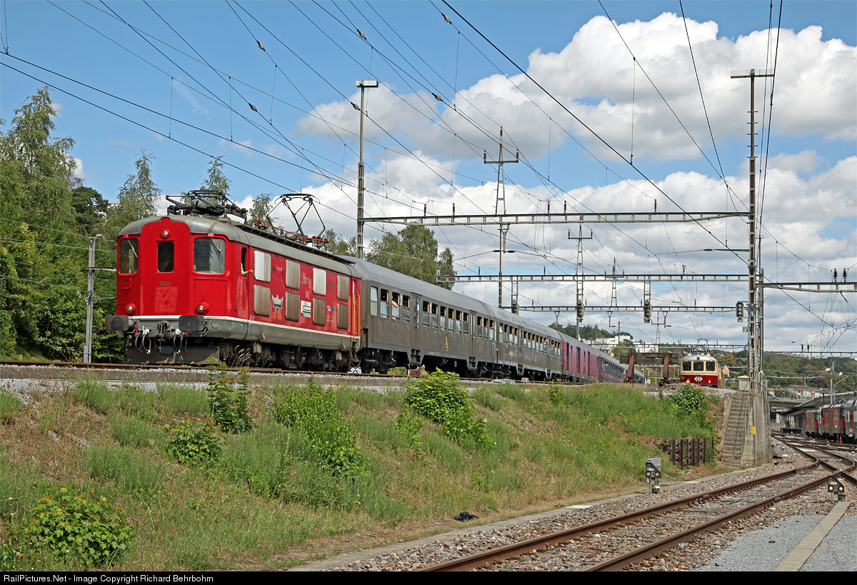 | Trans Rail Re 4/4 I (a former SBB locomotive, constructed in 1946) heads a private charter train (Stuttgart -) Schaffhausen - Zürich. The reason for this train is the event "Streetparade" in Zurich. |