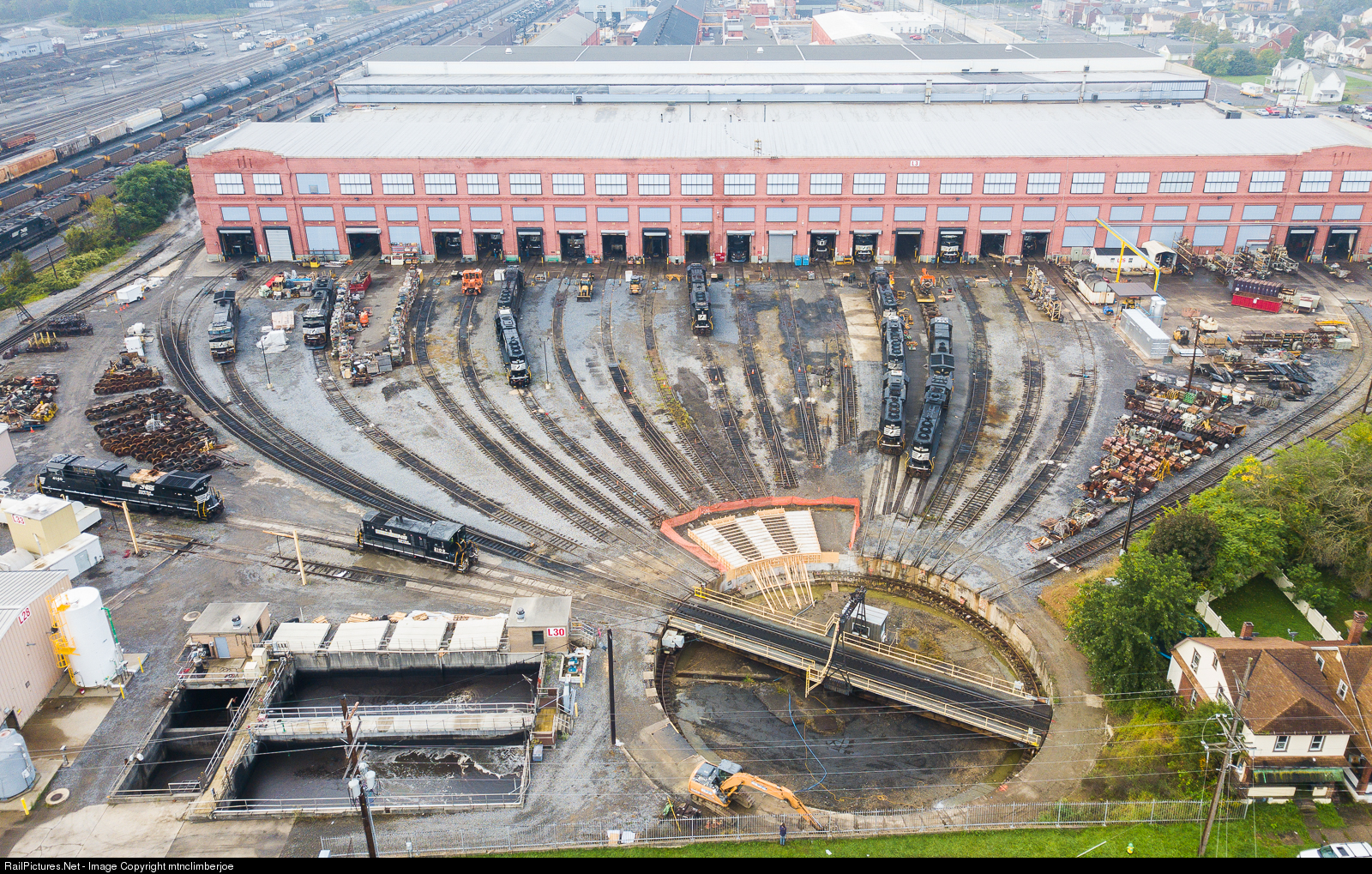 Several units await work outside the Juniata Shops in Altoona on October 7th. Some foundation work is also being done on the turntable.