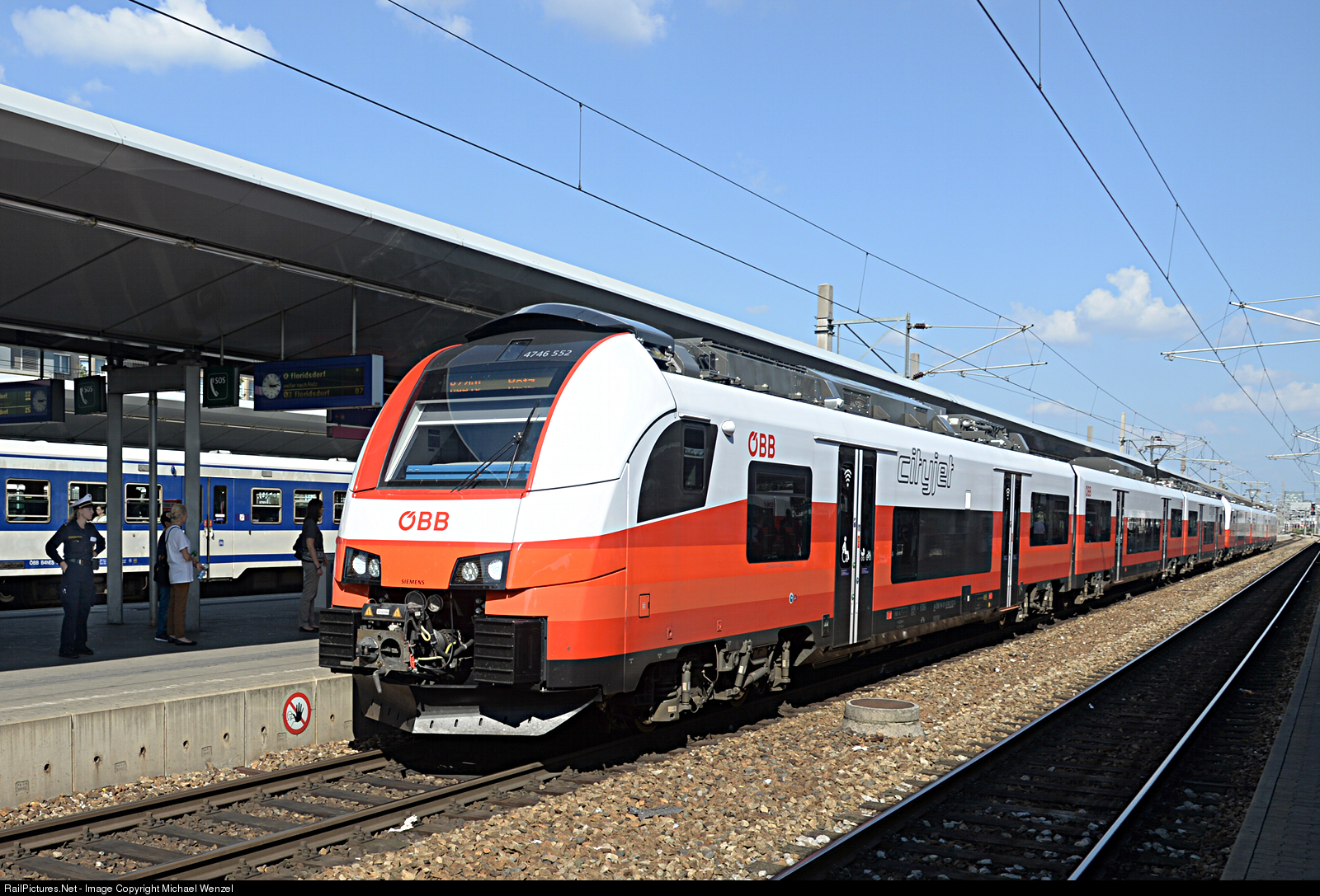 | The Class 4746 of ÖBB, a Siemens Desiro ML,is called cityjet by ÖBB and is used for S-Bahn Wien. the trainset has a maximum Speed of 160 km/h. In the modern Station Wien Meidling long distance trains, local trains and comuter trains arrives in quick succession. |