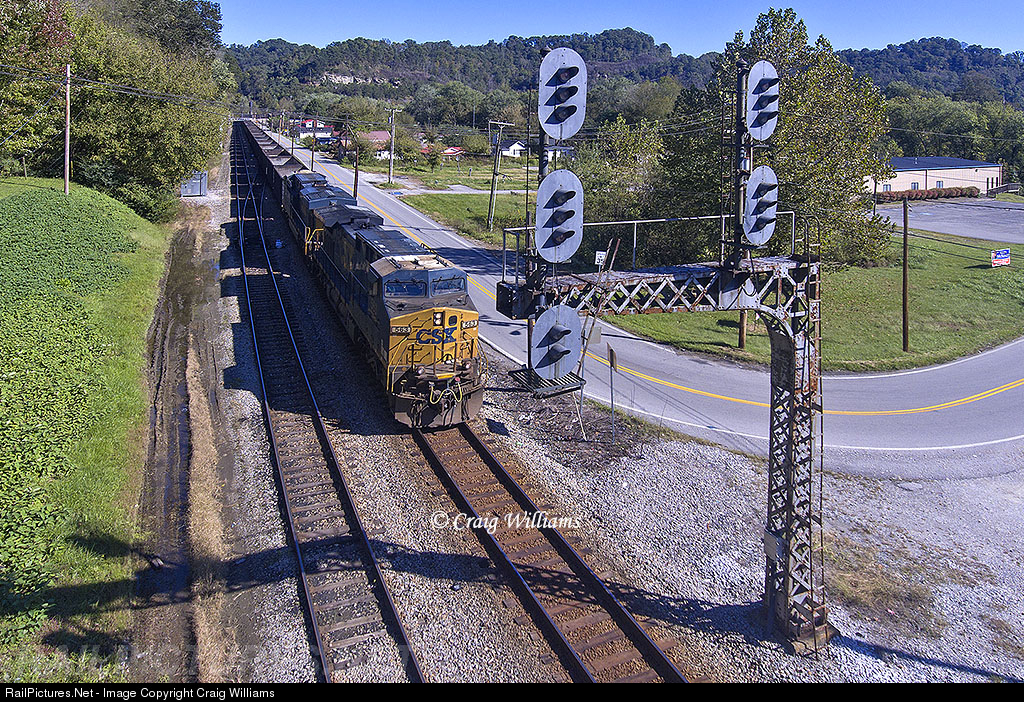 A 75 car empty coal train out of Russell is working down the Big Sandy towards Martin Yard. At Martin a new crew will hop on for the trip over to Hazard. The train is seen here passing classic ex-C&O signals at West Paintsville. This is an old C&O branchline that is in the heart of Central Appalachia Coal Country in Kentucky. The line is still littered with old C&O style signals, just come prepared that train traffic can be hit and miss.