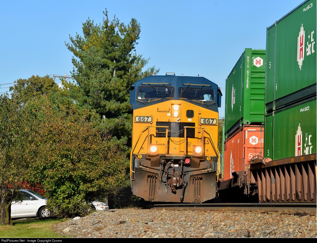 | PRLX 667 leads the daily Elkhart, IN to Macon, GA manifest past Irene's Little bar along the first leg of the CNO&TP. |