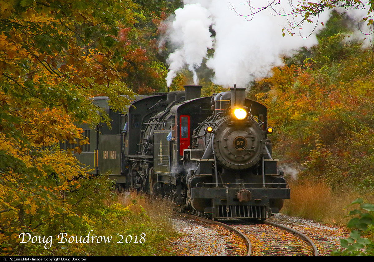 For the first time in almost a decade, 1926 Alco-Cooke built 2-8-0 #97 pulls a revenue train for the Connecticut Valley Railroad. The locomotive just came out of the shops following an overhaul. Old 97 was originally built for export to Cuba but was instead delivered to the Birmingham Southern Railroad as #200. In 1964, she began running as Vermont Railways #97 before being sold to the Valley Railroad in 1970. On the day of this photo, she was used as the lead engine in a double-header excursion for the Mass Bay Railroad Enthusiasts along with #3025, 1989 Chinese Mikado built to look like a New Haven Railroad J-1. Connecticut Valley Railroad is now one of only a handful of railroads in the United States with three operable standard gauge steam locomotives.