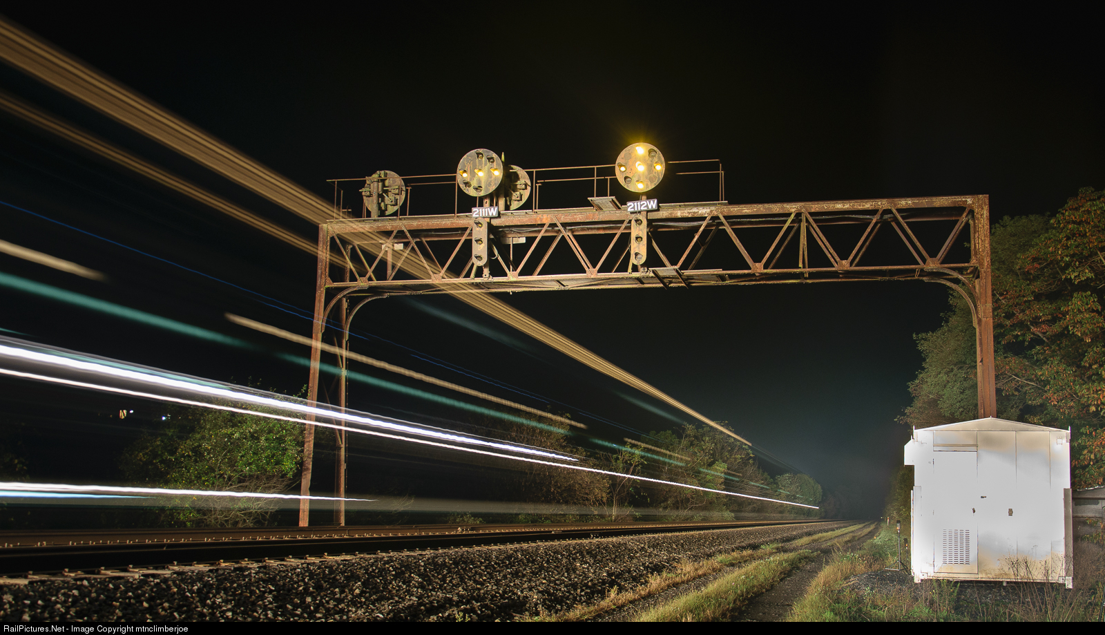 Norfolk Southern trash train 63V lights up the classic Pennsylvania Railroad position light signals at 211 on the NS Pittsburgh Line.
