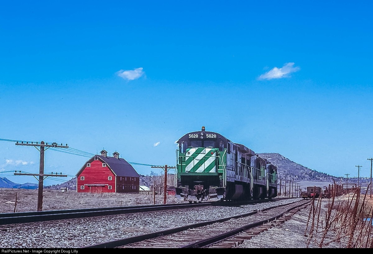 | After pushing a train from Denver to Palmer Lake on the Joint Line, three Burlington Northern C30-7’s need to return to Denver. They are seen here running light through Greenland, Colorado. |