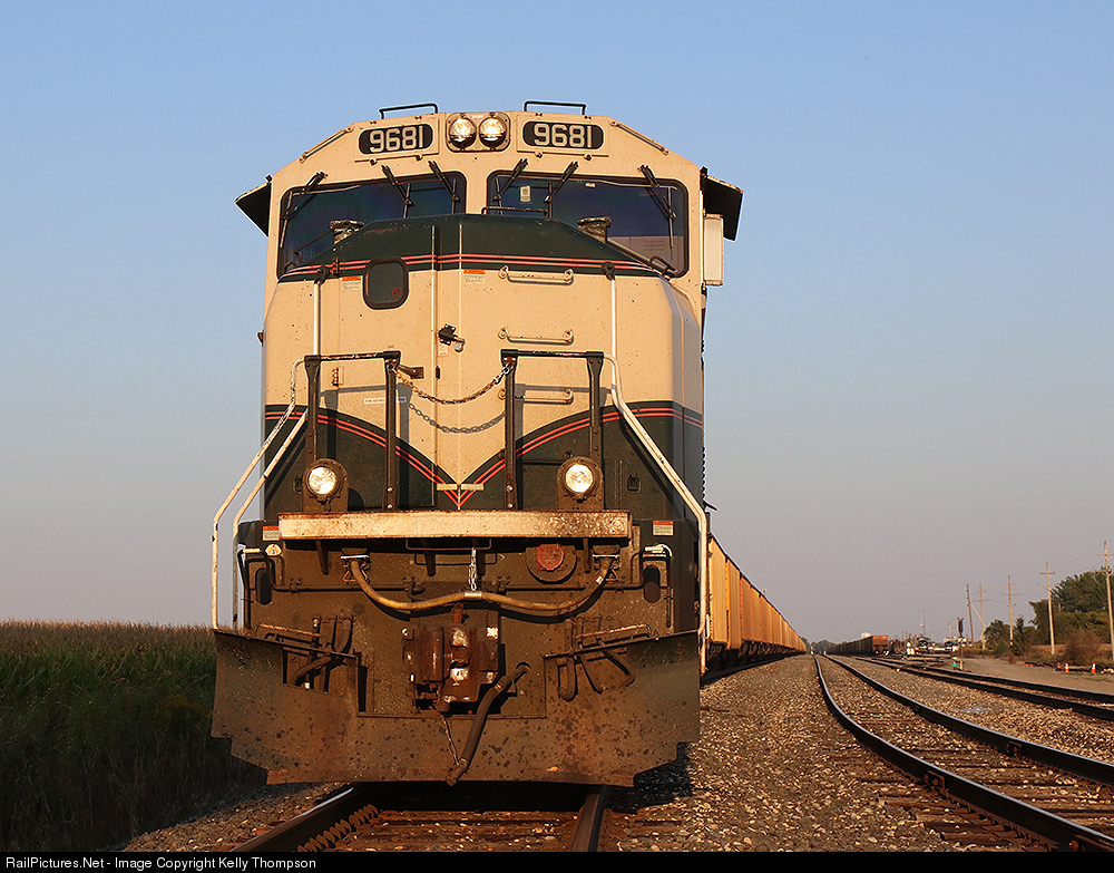 With the sun casting a golden glow, BNSF 9681 sits in NS's Kankakee Yard on point of a coal train bound for interchange back to the BNSF. Taken with permission from the crew.