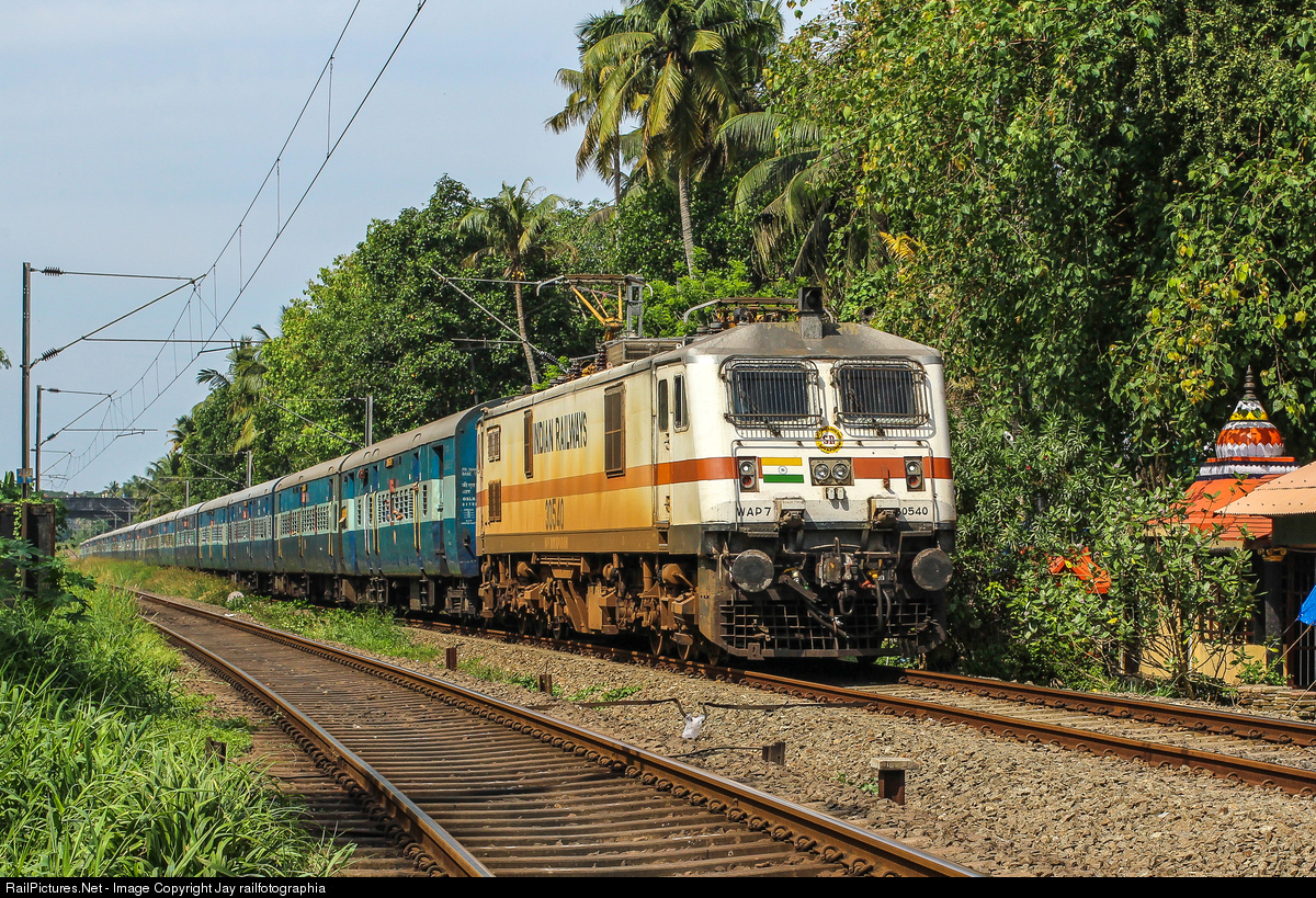 Being office-goer's train, VANCHINAD Express was less crowded on a Sunday, rushing to its final stop powered by ROYAPURAM WAP-7