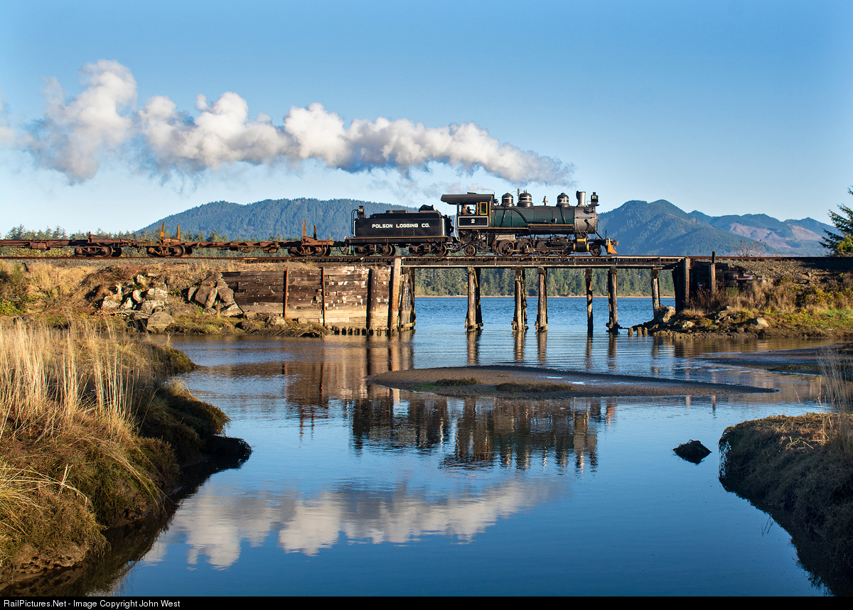 This shot was pure luck. I was headed for the Portland airport but had enough time for a few pix before I left so I chased. A few miles back the 2 was in dense morning fog, but as I drove toward Wheeler the fog started to open up. But still no sun. But this is a classic OCSR shot that I wanted, so I slithered down the steep slope from the road and picked my way through the dry spots on the mud flats. Fortunately the tide was coming in so I had water for a reflection, not mud. And just as the train came the sun peeped over the hill just enough to light the foreground. This was not a runby spot so there was no big cloud of clagg, but the morning was still cool enough to provide a nice plume of condensing steam. A properly fired steam engine loafing on the flats. Can steam railroading be an prettier? A Lerro Productions charter. Thanks to Pete and the hard working folks at the OCSR who put in some really long days.