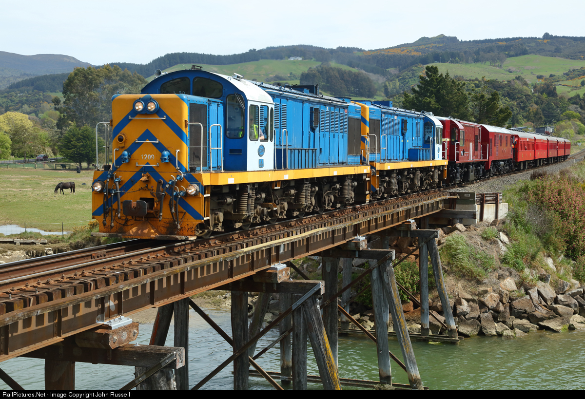 | The DJ class was built by Mitsubishi in 1968-69 and several are operated by Dunedin Railways. Due to fire suppression regulations for a long tunnel north of Dunedin, 1209 and a sister are pilots for English Electric built DG 772 and DI 1102 hauling a Steam Incorporated train up the long 2% grade. |