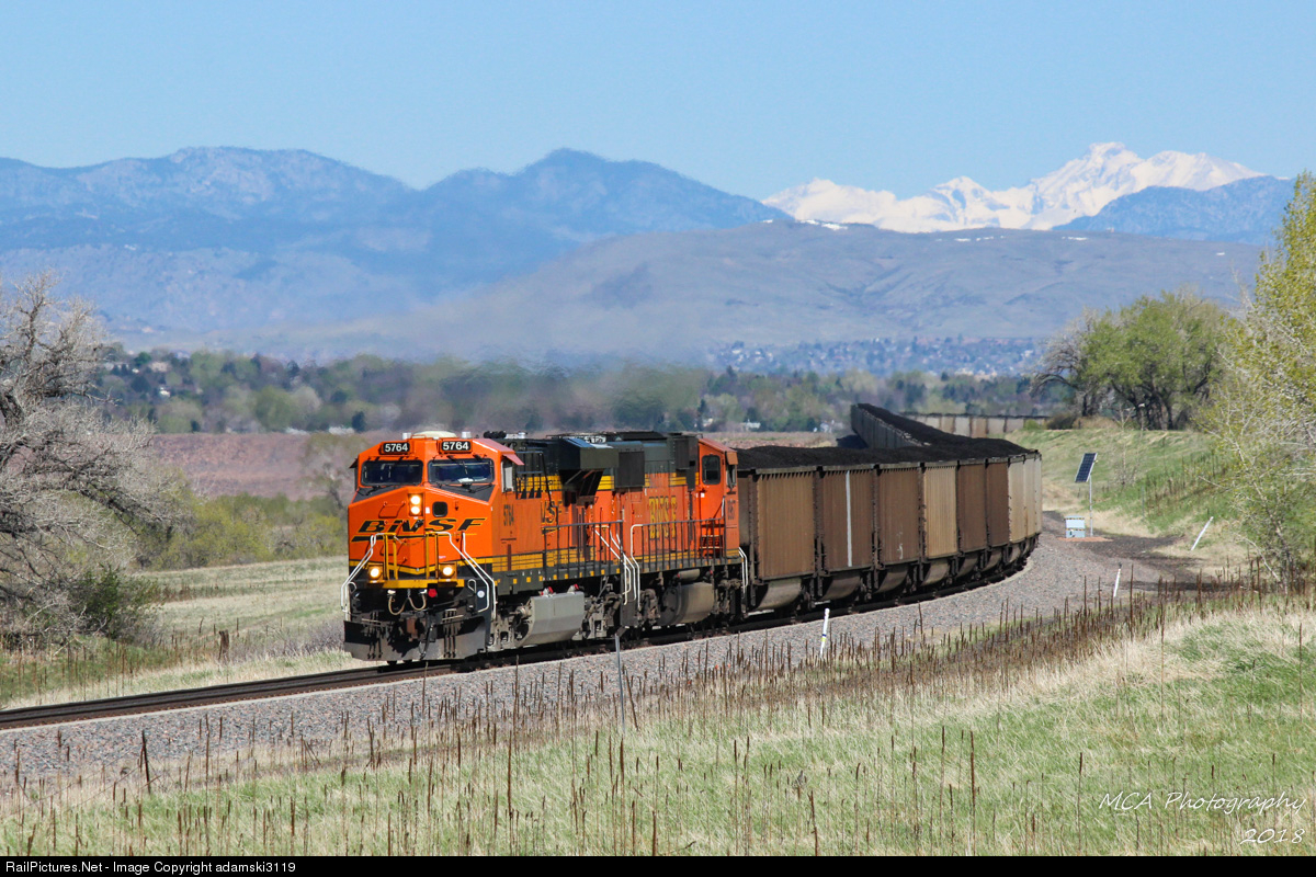 | A ubiquitous BNSF GEVO with a ubiquitous Joint Line coal drag rolls down main one on the south side of Littleton, CO. |
