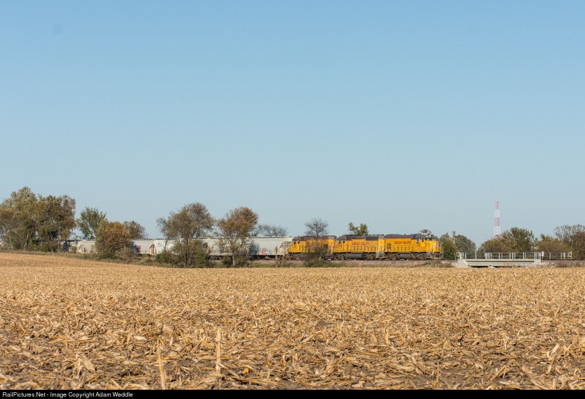 UP Y708 and company have left the main line and are now cruising along on the Troy Grove Sub.