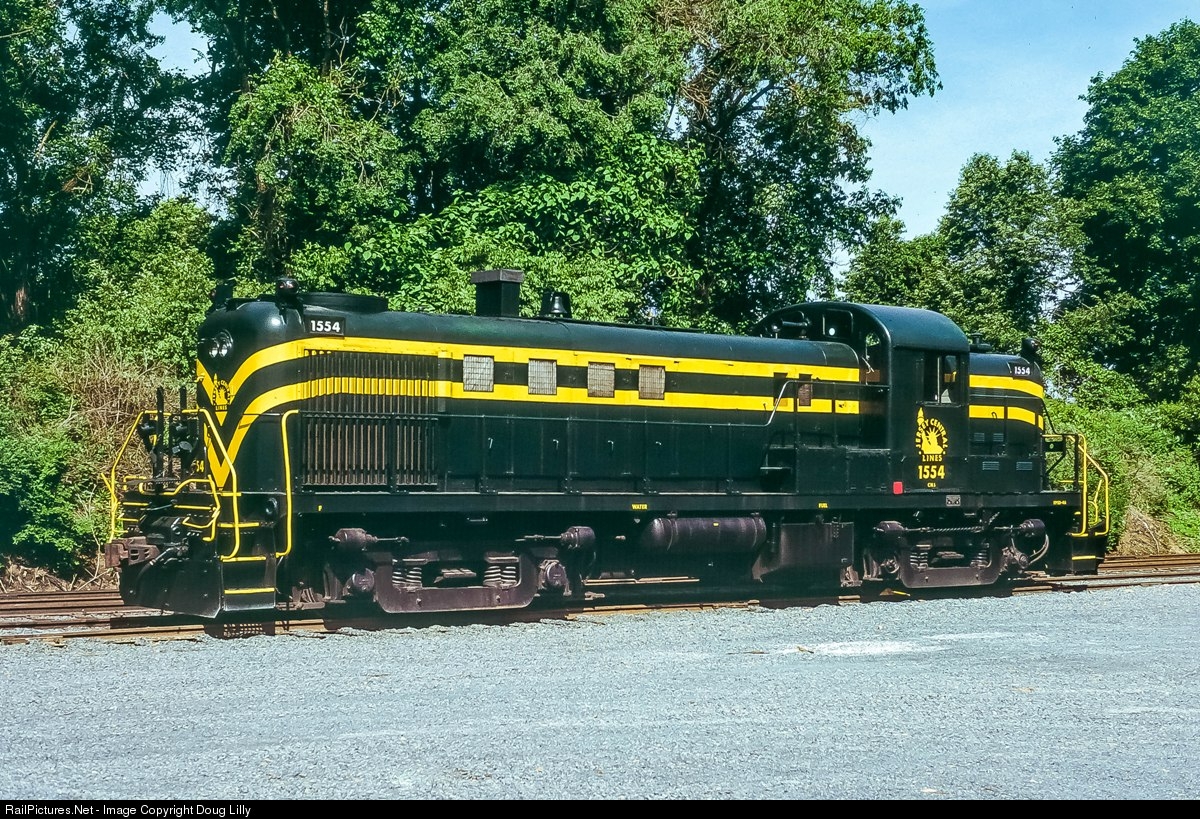 After serving the Black River & Western for a decade, former Jersey Central RS3 1554 was acquired by the Hawk Mountain Chapter, NRHS and restored to its original appearance. The RS3 spent some time on the Blue Mountains & Reading, as seen here at Temple, Pennsylvania.