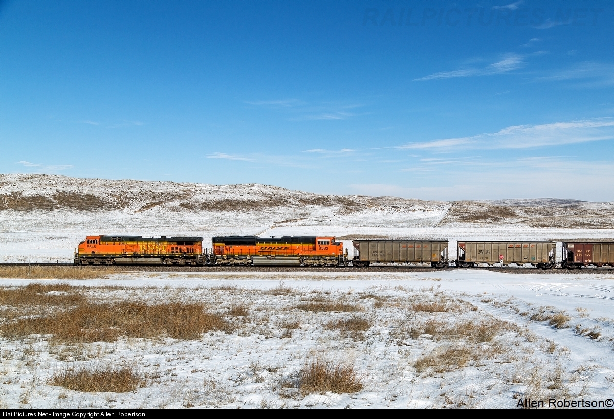 BNSF 5645 & 8582 with westbound empties between Hyannis & Ashby.