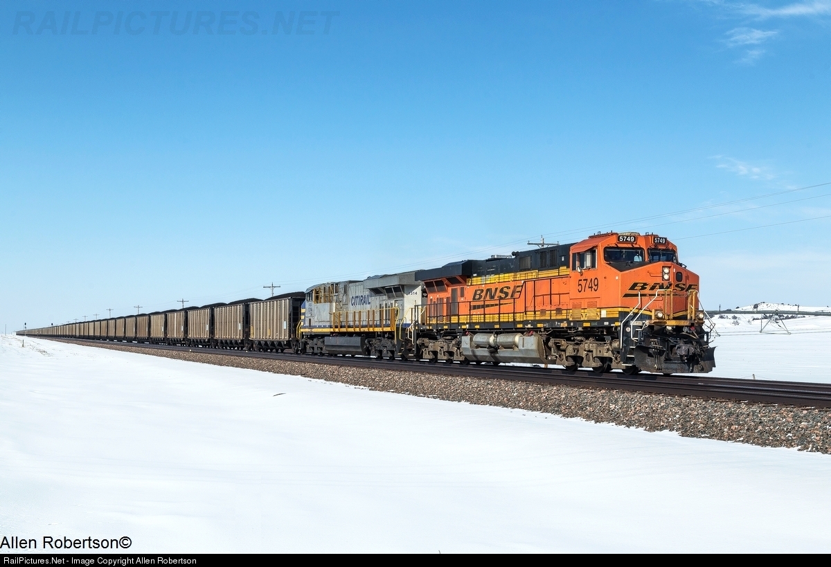 BNSF 5749 & CREX 1314 lead eastbound coal loads.
