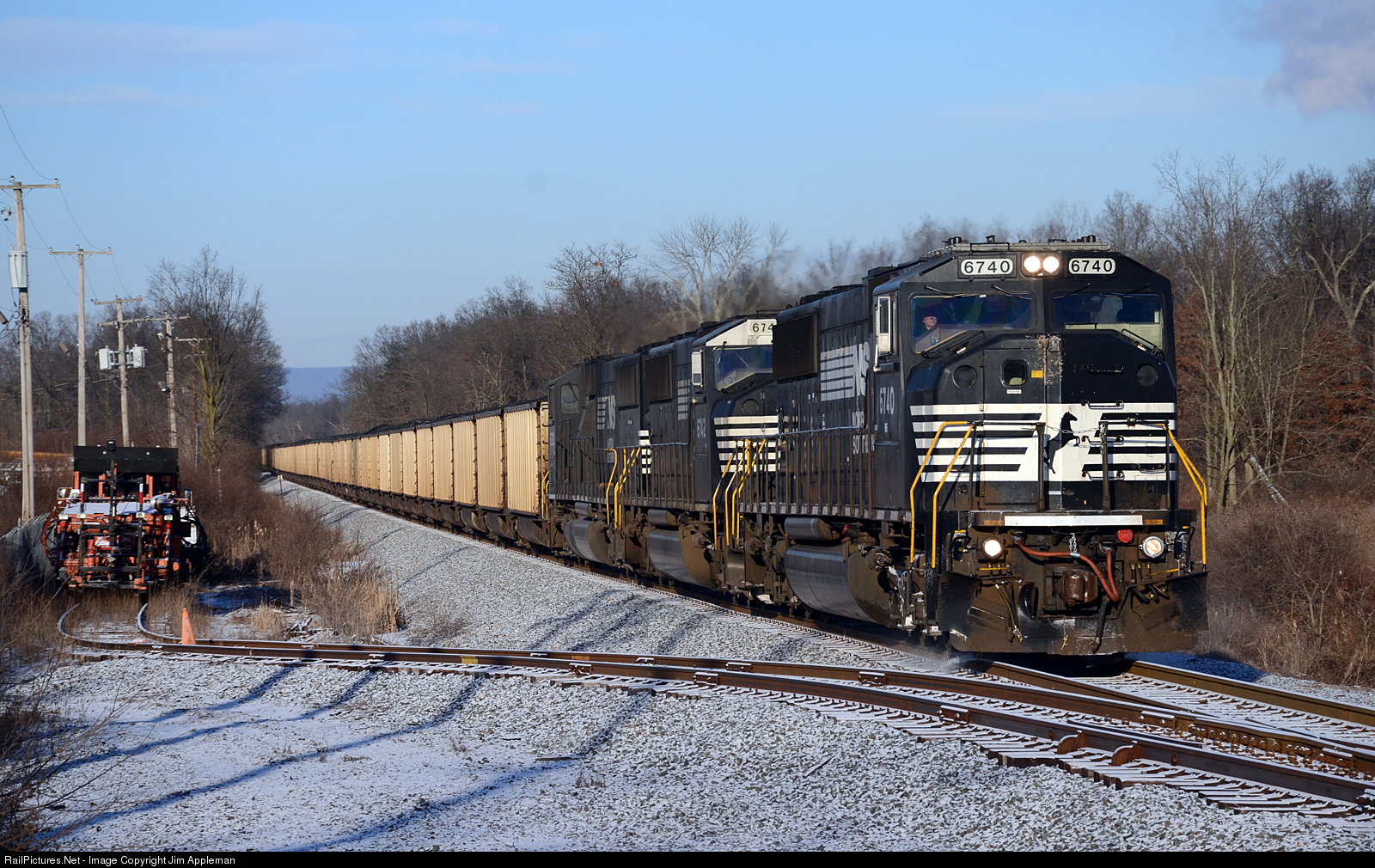 A very slick coating of graupel, or snow pellets, caused this coal train for Montour Power Plant to stall on Turbotville hill. NS 3339 is giving a push on the rear the rest of the trip to the plant.