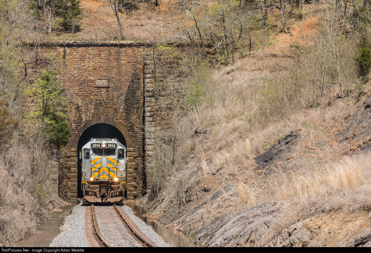 The Fort Smith Dodger has completed their work, and are now heading back to Heavener, OK. In this frame, we see the train roll through Jenson Tunnel, which was constructed in 1886.