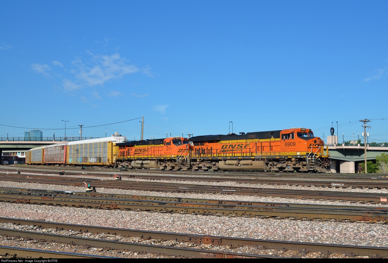 BNSF 6909 (ES44C4) brings loaded autoracks into the Denver Yard.