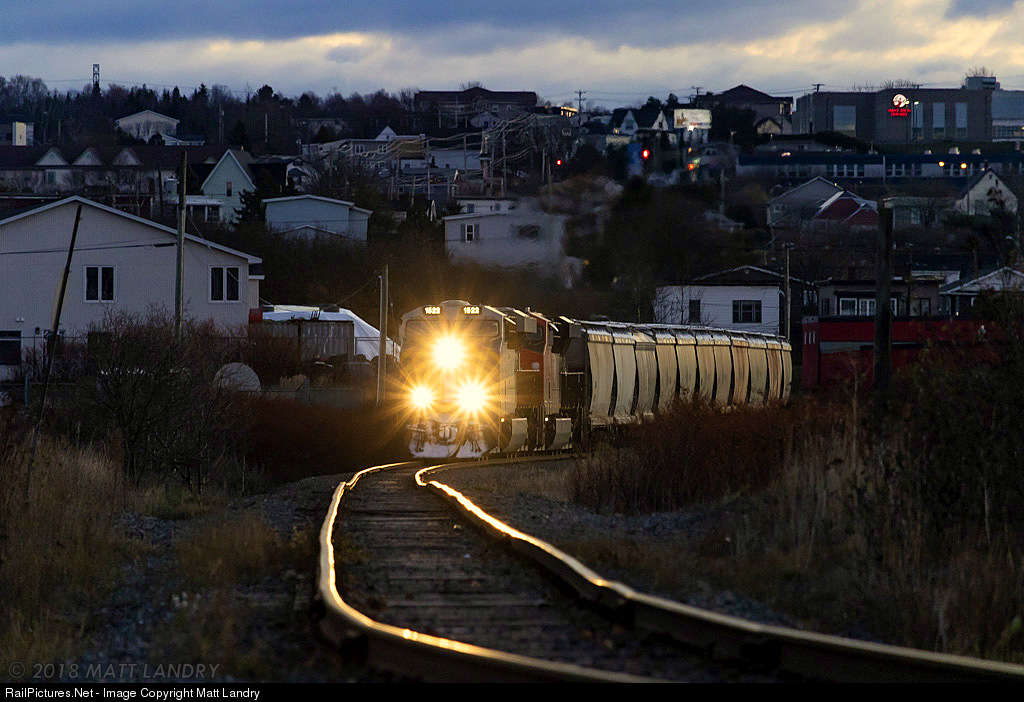 After setting off the first half of their train, CN B730 has returned to their second half, still at CN's Island Yard, in Saint John. They are seen here rounding Cains Corner, "the rock cut", heading to Courtnay Bay. Some great track along this spot, but it could be over emphasized by the 250mm lens.